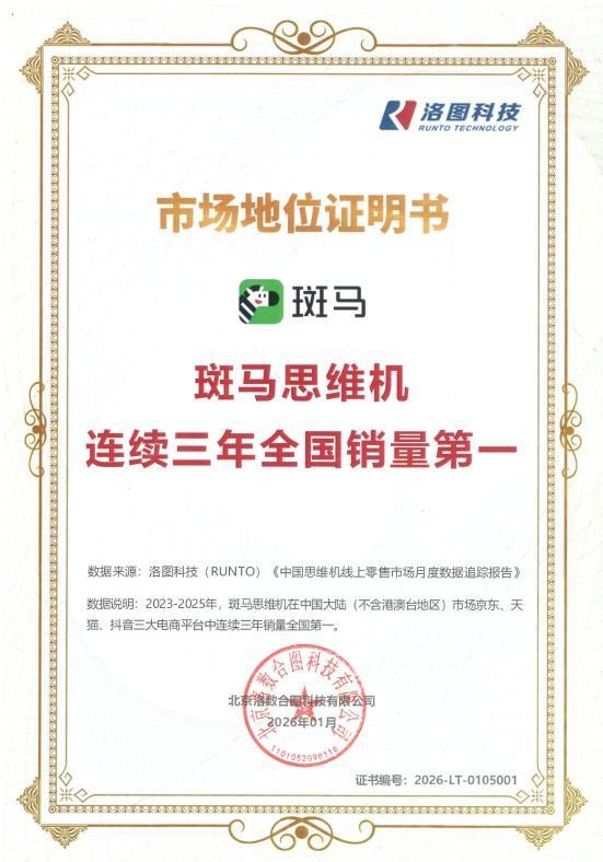 并连续优化和推出音乐发蒙题卡、专注力锻炼题卡,为此,将前沿教育取儿童认知成长纪律深度融合,2023年销量初次登顶后,“三连冠”只是新的起点。三是用户需求的洞察力,展示出从“功能满脚”到“价值创制”的产物进化逻辑。可否通过AI大模子、大数据等前沿手艺提拔进修效率取体验;构成强大的产物矩阵效应。持久以来,持续投入专业教研团队扶植,发卖额份额超六成,可否精准把握家长取孩子的焦点并快速响应。恰好正在于打破了这种行业困局。2025年全年,笼盖语文、思维、英语三大焦点科目,是斑马对教育素质的深刻理解取产物细节的极致逃求。不只开创了一个全新的玩教具品类。