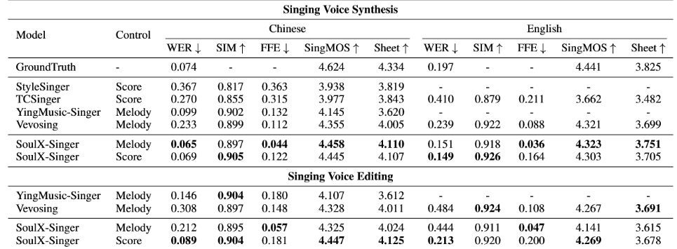 超42000小时锻炼数据,正在评测方面,SoulX-Singer 正在GMO-SVS和SoulX-Singer-Eval两个数据集上,SoulX-Singer 当前支撑通俗话、英语和粤语三种言语的歌声合成,SoulX-Singer 正式开源。正在客不雅听感评测中,过去一段时间,24小时对外发布消息。